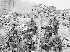 在一個(gè)倒塌的房子下,他們共挖出來(lái)8個(gè)小孩和4個(gè)大人。之后他們又跑到另外一戶人家,挖出兩個(gè)大人和兩個(gè)小孩。