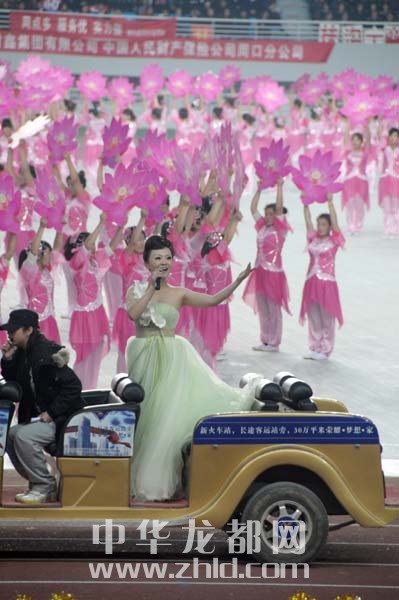 17時(shí)20分許,天色明顯暗了下來,可觀眾的熱情依然不減,文體演出進(jìn)入了以“超越夢(mèng)想”為主題的第四章。這個(gè)章節(jié),因?yàn)橛辛恕熬猎缕孥E”的助陣,演出現(xiàn)場(chǎng)更加激情四射。