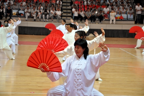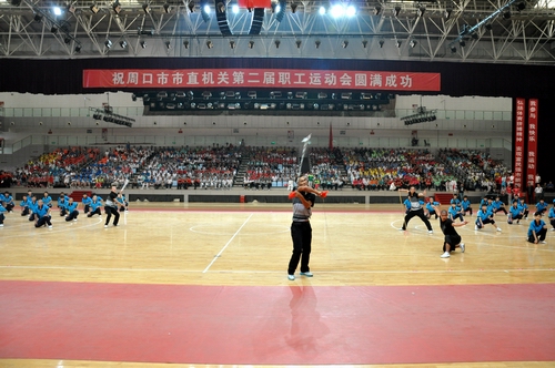 ????開(kāi)幕式后,由周口市教育局、周口市公路局、周口市直機(jī)關(guān)事務(wù)管理局、周口市直幼兒園四個(gè)參賽單位共同表演的第九套廣播體操拉開(kāi)了文體表演的序幕。周口師范學(xué)院推薦的青春健美舞,周口太極協(xié)會(huì)的太極刀、太極劍、太極扇表演,周口市秧歌協(xié)會(huì)推薦的中老年健美舞和周口三通武校帶來(lái)的精彩武術(shù)表演等全民健身項(xiàng)目展演。
