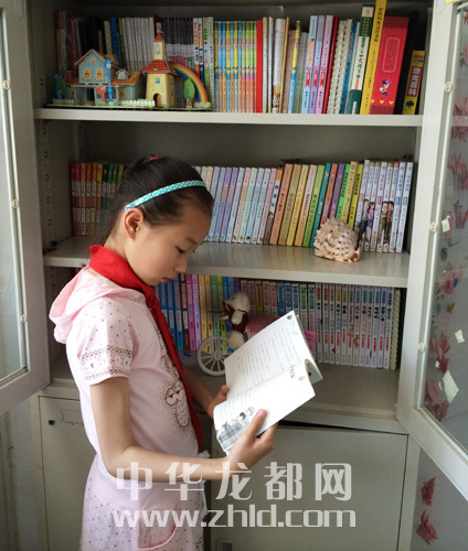 據(jù)了解,金株看得最多的是童話、文學(xué)類以及科普類書籍。金株有自己喜愛的作家,“楊紅櫻、曹文軒、伍美珍、郁雨君、楊鵬、沈石溪、黃蓓佳、湯素蘭、杰羅尼摩·斯蒂頓等等?!绷盒懔峤榻B,女兒剛上幼兒園的時(shí)候,自己給她買來《世界經(jīng)典童話》上下冊(cè),每天給金株念。女兒5歲的時(shí)候,梁秀玲就鍛煉金株把講過的故事復(fù)述出來,慢慢地金株能把故事完整地復(fù)述。梁秀玲又帶她買了一些童話書鼓勵(lì)她自己看?!懊康街苣揖蜁?huì)帶著金株去逛書店,每次都要買書。她比較喜歡按照作者的系列叢書來收藏,現(xiàn)在家里的兩個(gè)書架都沒放下她的書,有300多本藏書。”
