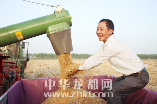 ??? ?眼看金燦燦的麥粒不斷從機倉里流出,項城市一農民的臉上露出了燦爛的笑容。為保證夏收順利進行,項城市充分發(fā)揮大型農業(yè)機械在麥收中的作用,爭農時、搶速度,確保小麥顆粒歸倉?!。◤堄谰?攝)