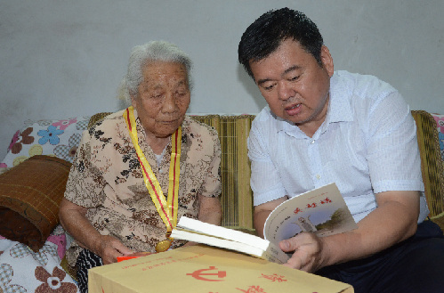 ????徐光一行先后來到抗戰(zhàn)老戰(zhàn)士老同志郭純義、張明鐸、王琪的家中,親切看望慰問他們,把黨和政府對抗戰(zhàn)老戰(zhàn)士老同志的關(guān)心傳遞到每個人心中。每到一處,徐光都與他們深入交談,了解他們的生活、起居、身體等情況,與老戰(zhàn)士、老同志一起回憶革命戰(zhàn)爭時期的崢嶸歲月,共話革命精神的傳承,祝愿他們健康長壽、生活幸福。慰問過程中,徐光滿懷崇敬之情,為抗戰(zhàn)老戰(zhàn)士老同志們佩戴由中共中央、國務(wù)院、中央軍委聯(lián)合頒發(fā)的“中國人民抗日戰(zhàn)爭勝利70周年”紀念章,送上慰問金和黨史書籍。徐光動情地說:“明天就是中國人民抗日戰(zhàn)爭和世界反法西斯戰(zhàn)爭勝利70周年紀念日,我代表市委、市政府來看望問候你們,并向你們致以崇高的敬意和良好的祝愿。抗戰(zhàn)年代,廣大老戰(zhàn)士、老同志出生入死、不怕犧牲、英勇奮斗,為奪取抗戰(zhàn)勝利立下了不朽的功勛,你們是人民的英雄、國家的功臣,沒有你們的犧牲奉獻,就沒有我們今天的幸福生活,黨和人民永遠不會忘記你們。紀念抗戰(zhàn)勝利,就是要弘揚偉大的抗戰(zhàn)精神,凝聚起實現(xiàn)周口崛起、富民強市、全面建成小康社會的強大力量,不斷把周口的各項事業(yè)推向前進?!?/font>