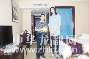 朱婷和周口晚報記者合影