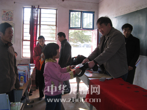 2006年,張偉為留守兒童發(fā)放慰問品。(資料圖)