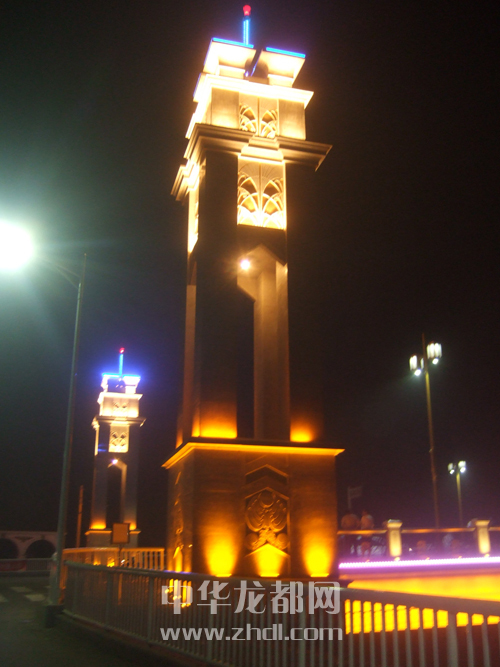 ????沙潁河周口市區(qū)段的八一大道橋是個(gè)很好的景點(diǎn)。一是設(shè)計(jì)得好,中外結(jié)合,寬闊、美觀、大方,橋欄桿、橋頭堡、彩燈獨(dú)具一格,給人以美的享受;二是施工質(zhì)量好,橋體、橋面、人行道、欄桿至今未出現(xiàn)一點(diǎn)問題,群眾很滿意;三是保養(yǎng)得好,開放至今一直保持著良好的風(fēng)貌。傍晚華燈齊放,橋上路燈一字兒排開,欄桿彩燈五光十色,加上橋體的彩色射光,遠(yuǎn)處望著河中倒影,仿佛又現(xiàn)出一座金光閃閃的大橋,使人留連忘返,是游覽的好去處。筆者認(rèn)為:八一大道橋是周口市區(qū)最好的橋梁,也是最美的景點(diǎn)之一,真可謂“彩虹臥波”。推薦人:王羨榮