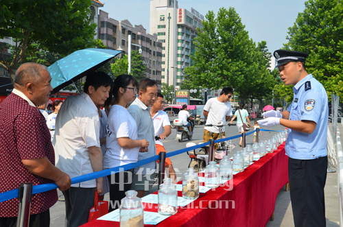 ????6月26日是國際禁毒日,當(dāng)天上午,周口市公安局禁毒辦聯(lián)合周口市法學(xué)會(huì)、共青團(tuán)周口市委、市衛(wèi)生局、市食品藥品監(jiān)督管理局等單位在市區(qū)五一文化廣場舉辦以“無毒青春、健康生活”為主題的國際禁毒日大型宣傳活動(dòng)。據(jù)了解,此次宣傳活動(dòng)共向群眾發(fā)放宣傳資料5000余份,接受各類咨詢300 余人次,受教育人數(shù)近7000 人。