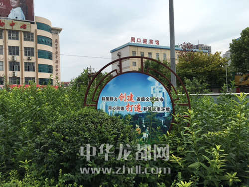 五一文化廣場綠化帶內(nèi)的公益廣告宣傳牌