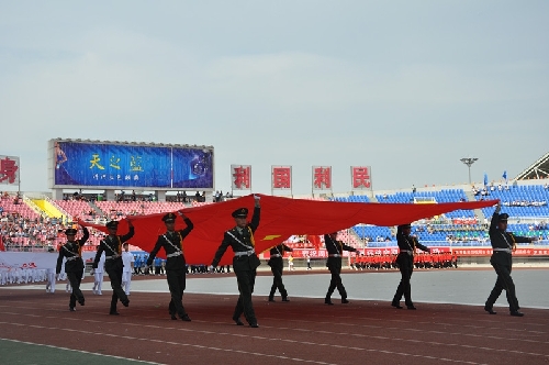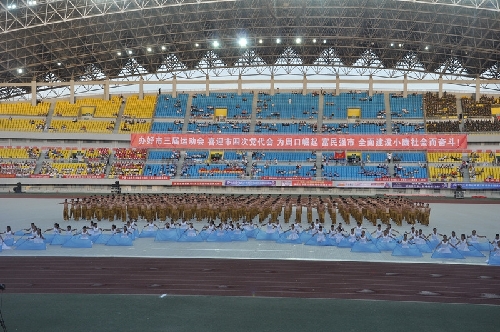 ????當日16時,國旗方陣、會旗方陣、彩旗隊、裁判員、運動員依次入場,一個個意氣風發(fā)的團隊引來現(xiàn)場觀眾陣陣掌聲和歡呼聲:周口川匯區(qū)代表團首先入場,他們步伐矯健,英姿勃發(fā);市委辦公室代表團精神抖擻,意氣風發(fā);市委宣傳部代表團邁著矯健的步伐走向主席臺……