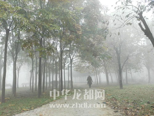 ????11月13日,周口市區(qū)被濃霧籠罩,建筑物和樹木在霧中若隱若現(xiàn),恍如仙境。王銀行 攝