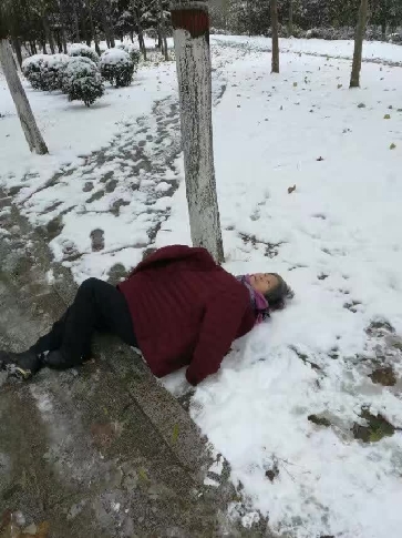 ????11月23日早上,大雪過后的周口銀裝素裹。在一家教育培訓(xùn)機(jī)構(gòu)上班的老師單啟航像往常一樣來到周口中心城區(qū)濱河公園晨練。7時許,單啟航在濱河路(市中心醫(yī)院北面)看到一位上了年紀(jì)的老大娘躺在雪地上,一臉痛苦。