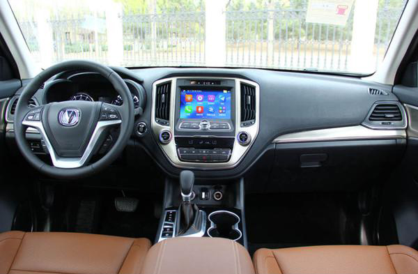 長安CS95采用大尺寸顯示屏搭配實(shí)體按鍵,兩側(cè)豎向設(shè)置了空調(diào)出風(fēng)口,按鍵排布層次分明,但略顯繁雜。新車還配有三輻式多功能方向盤,門板以及換擋桿處增加了木紋裝飾,同時(shí)提供5座和7座兩種選擇。