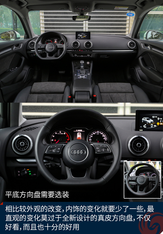 當然由于我們試駕的這臺車擁有S-Line套件,所以相比普通車款會更顯運動一些,不過就算是普通的版本,相比現(xiàn)款車型也變得更加運動了,也許設計師也明白,這款中期改款的A3并不是要做到顛覆的設計,而是通過細節(jié)的變化讓新車型變得更加犀利、動感。