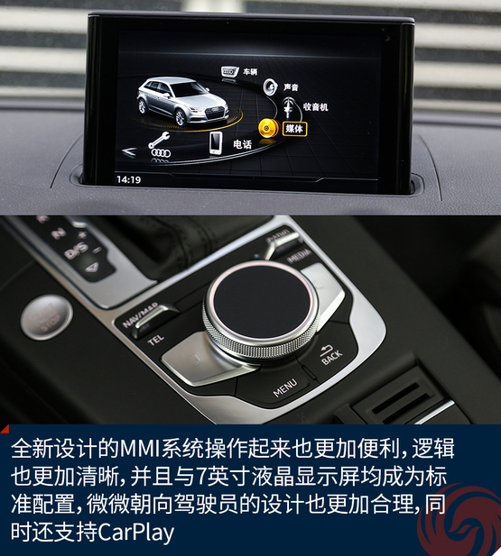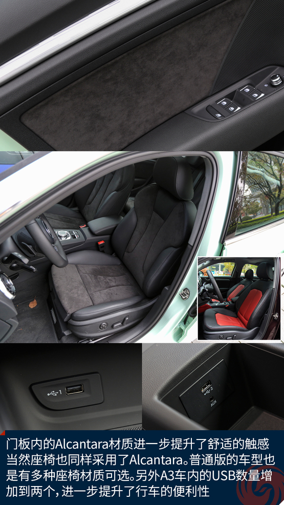 相比較外觀的改變,內飾的變化就要少了一些,最直觀的變化莫過于全新設計的真皮方向盤,不僅好看也十分的好用,發(fā)光的迎賓踏板進一步增加了車輛的高級感,中控面板上的鋁合金材質的裝飾條質感出色,不僅如此,還有多種樣式和材質可選;而門板內的Alcantara材質進一步提升了舒適的觸感,當然座椅也同樣采用了Alcantara。另外新增加的USB接口也進一步增加了行車的便利性,這也讓A3車內的USB數(shù)量增加到兩個。同時,全新設計的MMI系統(tǒng)操作起來也更加便利,邏輯也更加清晰,并且與7英寸液晶顯示屏均成為標準配置,微微朝向駕駛員的設計也更加合理,同時還支持CarPlay。