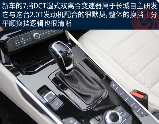 由于渦輪介入的時(shí)間稍晚一些,起步時(shí)不會(huì)讓你感覺(jué)特別的輕快,但也不會(huì)差到讓你無(wú)法接受,只要保持平常心就好;當(dāng)這臺(tái)2.0升的渦輪增壓直噴發(fā)動(dòng)機(jī)真的卯足了勁發(fā)力之后,360牛米的最大扭矩完全不是鬧著玩的,后背感覺(jué)有人在猛使勁的把你向前推。長(zhǎng)城自主研發(fā)的7擋濕式雙離合變速器是新車的一大亮點(diǎn),日常駕駛的過(guò)程中升降檔都有著不錯(cuò)的平順性,不過(guò)起步初期離合器結(jié)合的速度還是稍微有一些慢,急加速時(shí)變速箱的反應(yīng)也不夠靈敏,這在一定程度上拖累了整體的動(dòng)力表現(xiàn)。