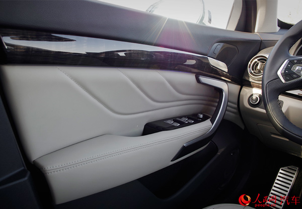 再細(xì)看VV7的內(nèi)飾做工與用料,能發(fā)覺(jué)它確實(shí)很用心。不僅中控臺(tái)質(zhì)感不錯(cuò),在車門(mén)板內(nèi)側(cè)各處也采用了材質(zhì)細(xì)膩的皮質(zhì)包裹層,門(mén)把手、按鍵都透露出精致感。WEY這款方向盤(pán)非常粗壯,包裹的皮質(zhì)手感很好,不過(guò)按鍵的布局和標(biāo)注并不能讓你一下就明白操作,需要適應(yīng)。
