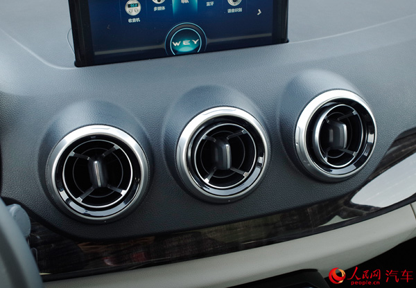 坐進(jìn)車內(nèi),或許能更直觀地感受到長(zhǎng)城為WEY品牌的首款車型所營(yíng)造的豪華氛圍。或許“豪華”二字并不是最準(zhǔn)確的形容詞,因?yàn)閂V7的內(nèi)飾設(shè)計(jì)更多地傳遞了一種科技感。大傾斜角度的中控臺(tái)上,有著寬大的飾板區(qū)分上下兩層,圓形的空調(diào)出風(fēng)口設(shè)計(jì)巧妙且有型,給你不錯(cuò)的印象。