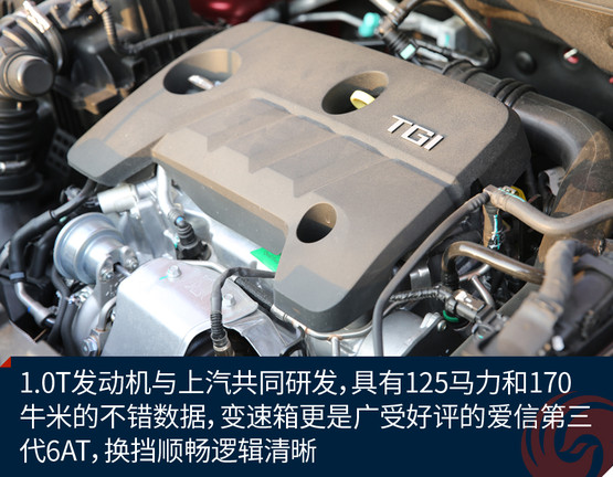 眼前這臺(tái)名爵ZS是1.0T 6AT車型,1.0T發(fā)動(dòng)機(jī)與上汽共同研發(fā),具有125馬力和170牛米的不錯(cuò)數(shù)據(jù),變速箱更是廣受好評(píng)的愛(ài)信第三代6AT,換擋順暢邏輯清晰。除此之外,低配車型還有1.5L發(fā)動(dòng)機(jī),與之搭配的是4速自動(dòng)變速器和5速手動(dòng)變速器。