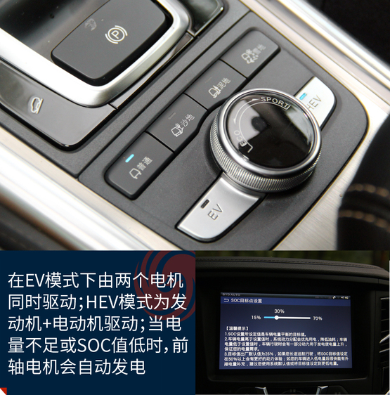 ????????宋DM搭載全時四驅系統(tǒng),其發(fā)動機和前電機位于前軸用于驅動前輪,后電機位于后軸用于驅動后輪。在EV的純電模式下車輛由前后兩個電機同時驅動;在HEV的混動模式下發(fā)動機和雙電機都會提供動力驅動車輛;當電量不足時,前電機則轉變成發(fā)電機,發(fā)動機通過前電機為電池充電,同時也為前輪提供動力,此時車輛由發(fā)動機和后電機同時驅動。