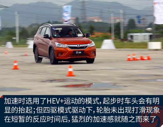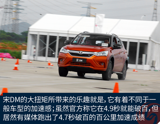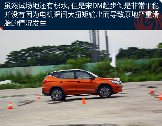 ????????為了充分體驗宋DM的加速能力,我們在試駕場地對其進行了試駕體驗。雖然試駕前一天下過雨,場地還有積水,但是宋DM起步倒是非常平穩(wěn)。并沒有因為電機瞬間大扭矩輸出而導致原地嚴重滑胎的情況發(fā)生。經過分析,出現(xiàn)這種情況的原因可能是宋DM全系標配了ESP車輛穩(wěn)態(tài)控制系統(tǒng),因此在起步時或者濕滑路面上行駛也能保證平穩(wěn);另一個原因是宋DM搭配了全時電四驅,車輛前后軸上各搭載有電機,四輪驅動讓車輛的動力輸出更順暢和均衡。