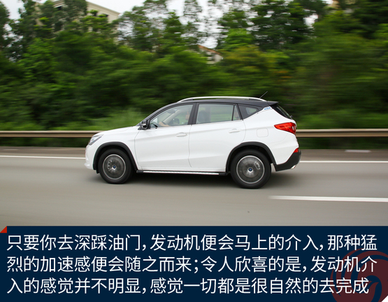 ????????在混合動力模式下,將駕駛模式調整為SPORT模式,由于起步階段是電機發(fā)力,因此并不像汽油車那樣靠吊轉速來獲得最大的扭矩。此時,你只需將油門踩到底,任由宋DM的電機和發(fā)動機發(fā)力就行,而大扭矩帶來的直接體驗就是,身體像是被摁壓在座椅上,任由車輛來讓我體驗G值給身體所帶來的快感,而這種“變態(tài)”的加速感體驗確實是非常的過癮;可當你還在意猶未盡地回味這速度高潮的時候,不知不覺就到了該踩剎車的節(jié)點。