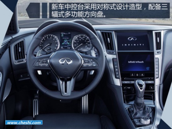 全新英菲迪尼內飾配有三輻式多功能方向盤,中央控制臺為對稱式造型,采用上下雙顯液晶屏幕。此外,新車還配備了撥片式換擋、一鍵啟動、電子手剎等配置。