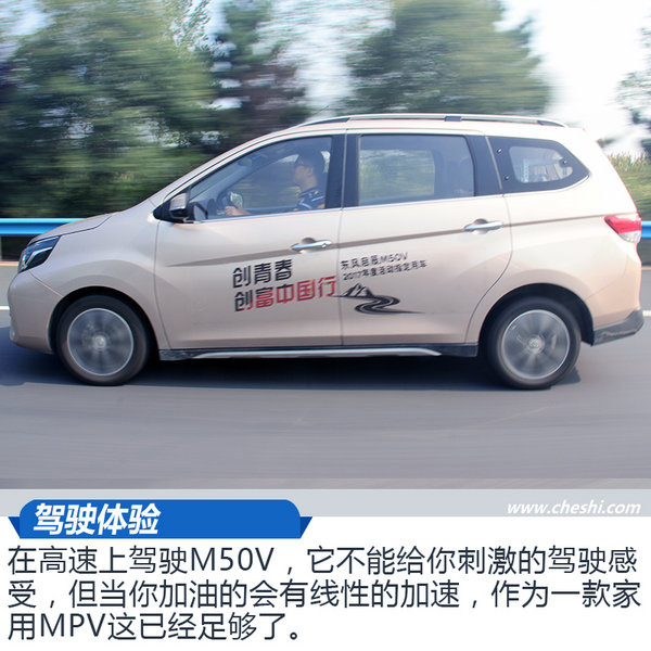 ????總結(jié):10多天來,我們駕駛著M50V走過城市道路,經(jīng)歷過長途旅行,上過山,爬過坡,作為一臺十萬元以下的MPV,1.6L+CVT的動力組合的平順性和底盤的扎實是我沒有想到的。同時在炎炎夏日車內(nèi)大開空調(diào)能有較好的燃油經(jīng)濟性,也是一大亮點。對于這樣一款擁有合資品牌技術(shù)的車型來說,是有可能成為新一代神車的!
