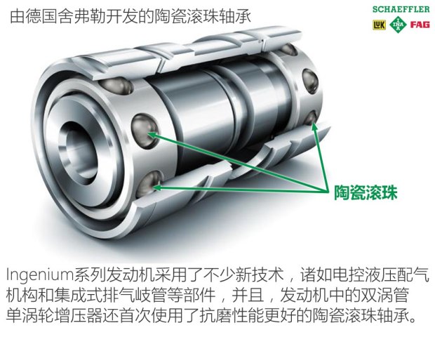 ????除此以外,這款發(fā)動機還配備了當前的主流技術,包括頂置直噴、進氣和排氣的VVT可變正時系統(tǒng),集成式排氣歧管以及滾子搖臂氣門驅(qū)動結(jié)構。帶陶瓷滾珠軸承的增壓器來自德國舍弗勒,由于陶瓷材料特性,理論上可以在結(jié)構方面解決增壓器因長時間使用后軸承磨損,進而導致的機油消耗問題。