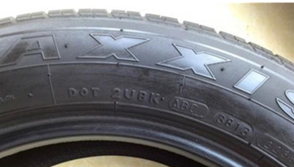 ????一般在輪胎的外側(cè)都有一串?dāng)?shù)字和字母,如下圖所示的數(shù)字“3813”,就是輪胎生產(chǎn)的日期,后兩位代表年份,也就是2013年,38表示輪胎是在13年的第38個周期生產(chǎn)的,也就是266天,共計8個月,所以輪胎是9分份生產(chǎn)的。