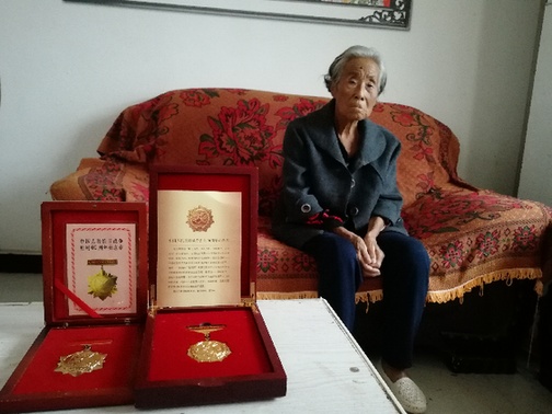 袁義英,1930年10月出生在山東省濱州市鄒平縣,現(xiàn)居住在西華縣紅花集鎮(zhèn)龍池頭村。1938年隨父親來(lái)到部隊(duì),父親犧牲后她被組織安排在后方醫(yī)院當(dāng)護(hù)士,1950年隨丈夫落戶在西華縣龍池頭村。