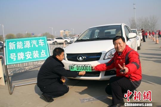 ????中新網(wǎng)保定11月20日電 (呂子豪 于俊亮) 20日,河北省公安廳副廳長(zhǎng)劉云峰將冀FD10001新能源汽車專用號(hào)牌正式頒給保定市民康辰龍。據(jù)悉,該新能源汽車將享受“不限行”的交通管理優(yōu)惠政策。