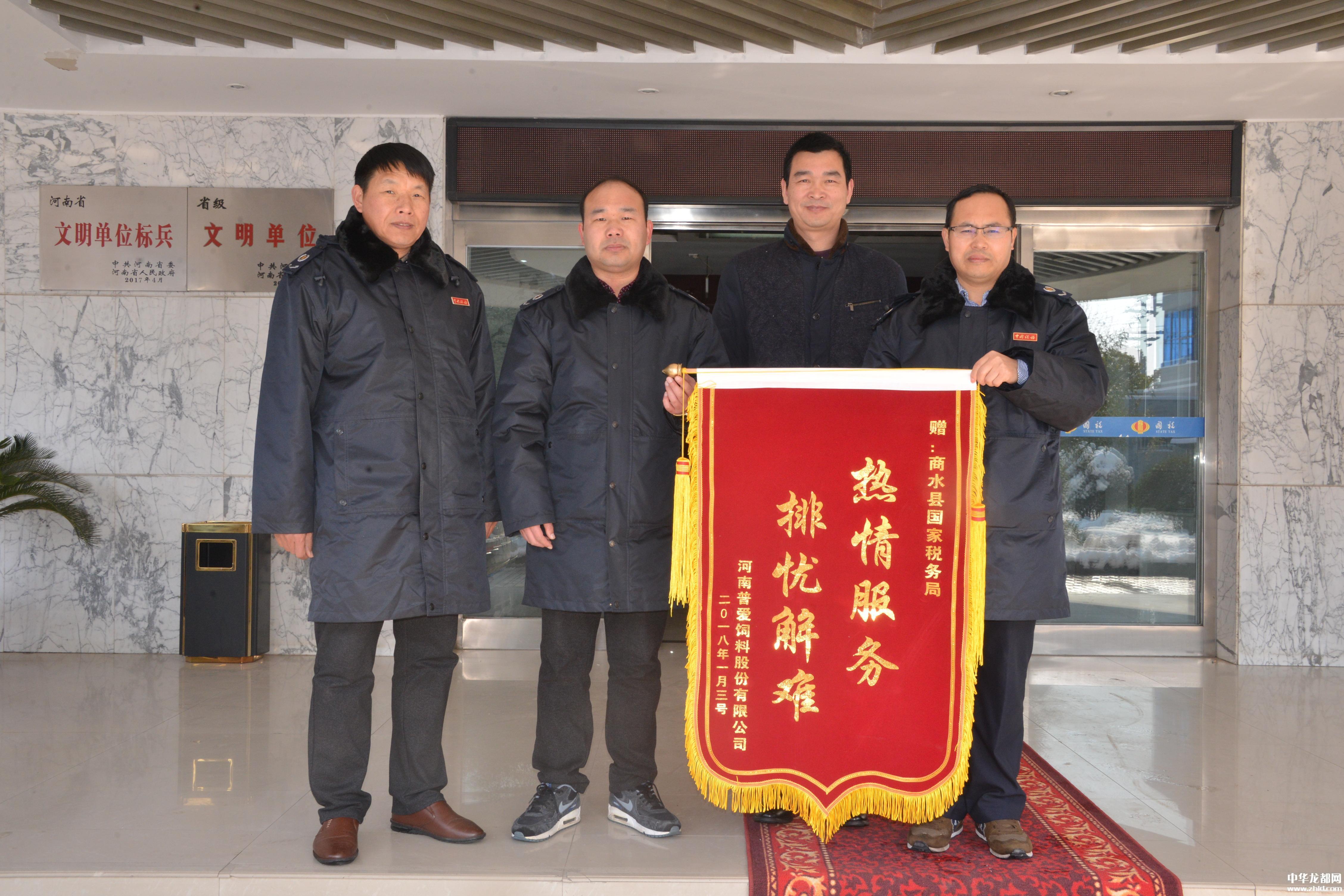 中華龍都網(wǎng)訊(周口報業(yè)全媒體記者 付永奇 通訊員 李媛媛)1月8日,河南普愛飼料股份有限公司的財務人員將一面印有“熱情服務排憂解難”的錦旗送到商水縣國稅局,感謝辦稅服務廳工作人員急納稅人之所急、想納稅人之所想,為他們提供細致、周到、高效的辦稅服務。