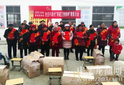 中華龍都網(wǎng)訊(周口報業(yè)全媒體記者 徐松 通訊員 閆紅旗)1月21日上午,鄲城縣政協(xié)和汲冢鎮(zhèn)黨委、政府,在縣政協(xié)駐村幫扶點史莊村召開“兩建三扶四評”表彰大會,為評出的16戶孝老愛親戶、脫貧致富戶、誠信守法戶、清潔衛(wèi)生戶頒獎。
