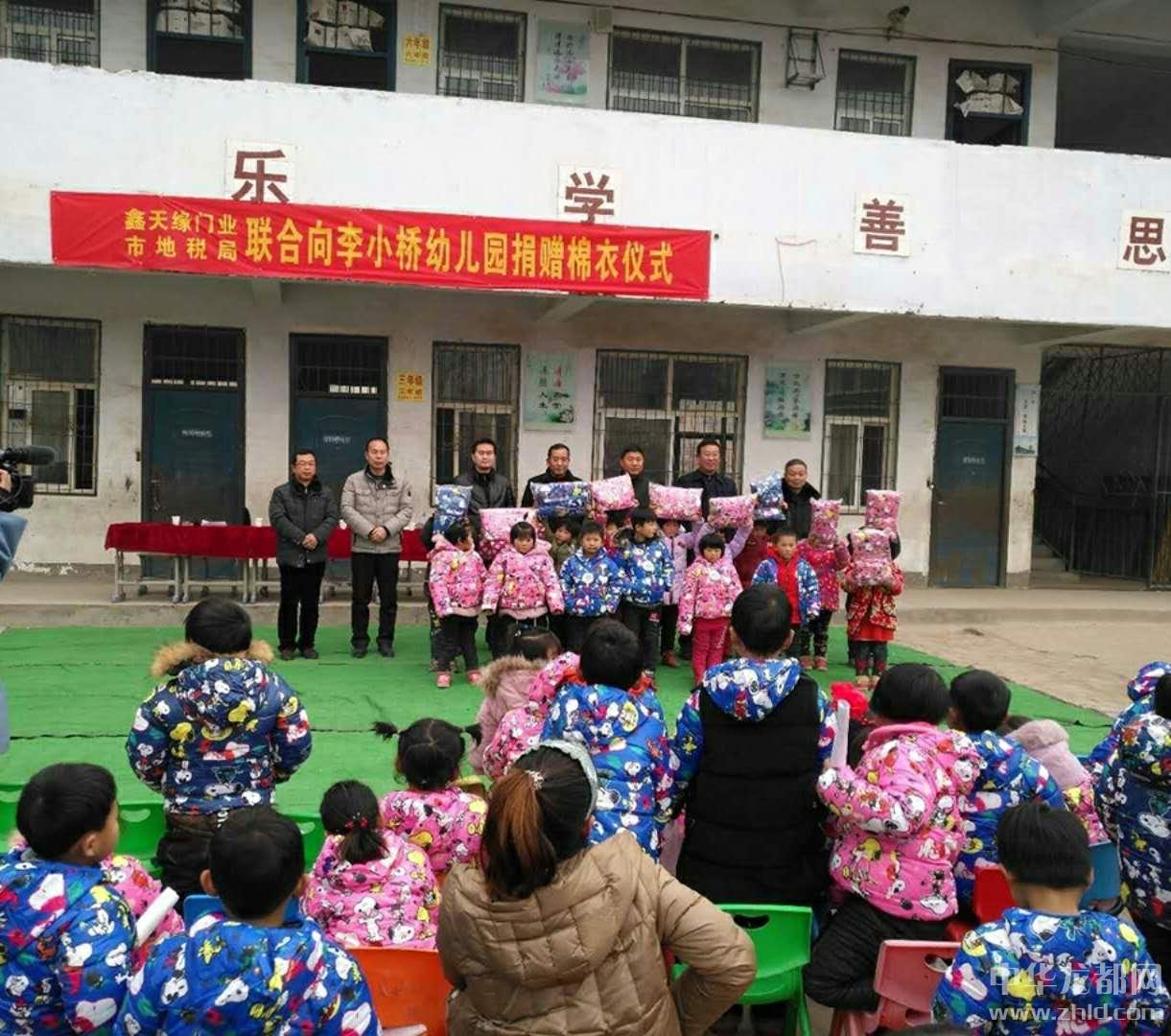 中華龍都網(wǎng)訊(周口報(bào)業(yè)全媒體記者 馬治衛(wèi) 通訊員 蘇童)一件衣物一份溫暖,一顆愛心一份感動(dòng)。1月22日下午,市地稅局駐村工作隊(duì)聯(lián)合愛心企業(yè)鑫天緣門業(yè)開展了向太康縣王集鄉(xiāng)李小橋幼兒園“送溫暖、獻(xiàn)愛心”棉衣捐贈(zèng)活動(dòng),為100多名孩子送去了價(jià)值5100元的御寒冬衣。市地稅局、太康縣教體局、王集鄉(xiāng)黨委政府有關(guān)負(fù)責(zé)同志及部分學(xué)生家長(zhǎng)和全校師生共400余人參加了此次捐贈(zèng)儀式。