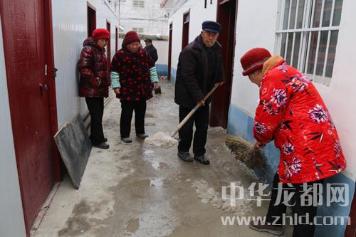 記者看到,一位老人正在用木棍敲打屋檐上垂下的“冰棍“,以免“冰棍”落下傷人,還有幾位老人在清掃剩下的一點(diǎn)點(diǎn)積雪,他們有說有笑,很是熱鬧,場(chǎng)面煞是溫馨。