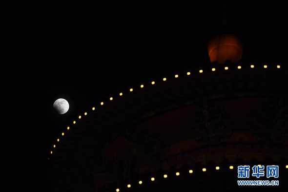 這是1月31日在北京宣武門(mén)地區(qū)拍攝的月亮升起時(shí)的場(chǎng)景。當(dāng)日是丁酉雞年最后一個(gè)滿(mǎn)月夜,天空中上演月全食大戲。我國(guó)大部分地區(qū)都能欣賞到一輪“紅月亮”高懸夜空的迷人景象。新華社記者 邢廣利 攝