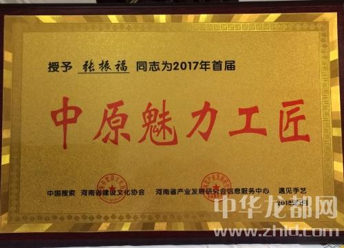 經(jīng)2017首屆中原魅力工匠評(píng)審工作委員會(huì)認(rèn)真初評(píng)、終評(píng)、綜合打分,最終張振福泥塑作品《老來(lái)伴》在推選活動(dòng)中榮獲“金獎(jiǎng)”。張振福等27位藝術(shù)家榮獲“中原魅力工匠”榮譽(yù)稱號(hào)。張振福作為民間藝術(shù)家代表在頒獎(jiǎng)典禮上作了唯一的典型發(fā)言即“獲獎(jiǎng)感言”。