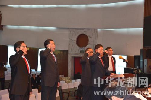 白建偉、王勝強(qiáng)、翟勝遠(yuǎn)、宋玉民、徐永豪在王銀河領(lǐng)誓下公開向憲法作就職宣誓。