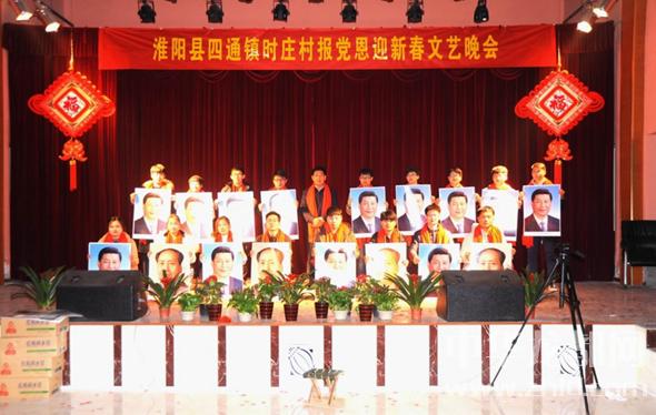晚會在《沒有共產(chǎn)黨就沒有新中國》的大合唱中拉開了序幕,時莊村30多名大學生和全場群眾一起歡度佳節(jié),放聲歌唱。小品《我們的時書記》道出了時莊村父老鄉(xiāng)親對黨支部、對時興榮的欽佩和愛戴,表達了時莊村群眾在黨支部的帶領(lǐng)下,脫貧奔小康的信心和決心?;搓柨h和四通鎮(zhèn)的領(lǐng)導慰問了困難群眾并和群眾一起觀看了演出。