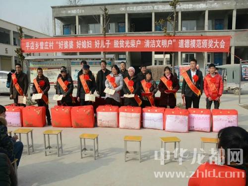 中華龍都網(wǎng)訊(周口報(bào)業(yè)全媒體記者 付永奇 趙永昌 文/圖))2月10日下午,商水縣平店鄉(xiāng)曾莊小學(xué)操場(chǎng)內(nèi),人頭攢動(dòng)、熱鬧非凡,村里評(píng)選出來(lái)的10位好婆婆、好媳婦、好兒子、清潔文明戶、脫貧光榮戶等“五好”群眾代表身披綬帶、胸戴紅花,臉上都洋溢著幸福的喜悅;一些民間文藝團(tuán)體分別助興表演了挑花籃、扇子舞、廣場(chǎng)舞等喜慶的節(jié)目,把現(xiàn)場(chǎng)氣氛烘托得異常隆重?zé)崃?。“為弘揚(yáng)社會(huì)公德、家庭美德,提升群眾素質(zhì)和文明程度,春節(jié)來(lái)臨之際我們召開‘五好’表彰大會(huì),下面有請(qǐng)鄉(xiāng)黨委副書記、鄉(xiāng)長(zhǎng)徐汝濤給大家講話......”隨著主持人、鄉(xiāng)紀(jì)委書記劉新光的開場(chǎng)白,臺(tái)下響起了一陣熱烈的掌聲?!伴_展好婆婆、好媳婦、好兒子、清潔文明戶、脫貧光榮戶等模范家庭人物評(píng)選是我鄉(xiāng)精神文明建設(shè)工作的一項(xiàng)重大舉措,也是脫貧攻堅(jiān)、農(nóng)村人居環(huán)境整治、文明鄉(xiāng)風(fēng)提升的部分內(nèi)容,更是弘揚(yáng)孝親敬老、勤勞致富、講究衛(wèi)生等優(yōu)良傳統(tǒng)的需要。全鄉(xiāng)各村都要通過(guò)召開評(píng)選表彰大會(huì),引導(dǎo)廣大人民群眾學(xué)先進(jìn)、爭(zhēng)先進(jìn),為文明和諧平店建設(shè)做出更大的貢獻(xiàn)......”徐汝濤提出殷切的希望。曾莊行政村“兩委”成員、駐村工作隊(duì)、第一書記及部分群眾200余人參加了會(huì)議。與會(huì)領(lǐng)導(dǎo)為此次層層推薦評(píng)選出的好婆婆、好媳婦、好兒子、清潔文明戶、脫貧光榮戶頒發(fā)了榮譽(yù)證書和獎(jiǎng)品。據(jù)村支部書記曾紀(jì)靈介紹,這些“五好”模范都有感人的故事,或是講究衛(wèi)生、勤儉持家,孝老敬親、患難與共;或是鄰里互助、脫貧致富;他們用實(shí)際行動(dòng)證明了自己對(duì)文明風(fēng)尚的價(jià)值追求,在生活中書寫了一個(gè)個(gè)接地氣的好故事,為廣大家庭樹立了好榜樣。受表彰的好婆婆胡秀英說(shuō):“把媳婦當(dāng)閨女,啥時(shí)候也不會(huì)吵架生氣......”清潔文明戶朱國(guó)申說(shuō):“農(nóng)村環(huán)境臟亂差,咱要帶頭改變它......”脫貧光榮戶劉前進(jìn)說(shuō):“國(guó)家扶貧政策好,不如早點(diǎn)摘掉貧困帽!”