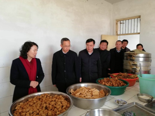 在城關(guān)鄉(xiāng)敬老院活動室,岳文華、王少青和五保老人親切交談,詢問他們的身體情況,為他們送上慰問金和慰問品。走進(jìn)敬 老院廚房,看到案板上堆放的色香味俱全的油炸雞肉、魚肉,岳文華叮囑院長,一定要備足年貨,讓老人們過一歡樂祥和的春節(jié)。