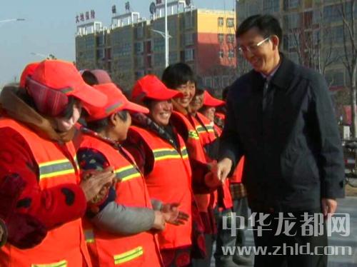 在扭頭橋小廣場,馬明超與環(huán)衛(wèi)工人一一握手,向大家送去新春的祝福。他說,環(huán)衛(wèi)工作雖然平凡,但意義重大,大家用自己辛苦付出換來了城市的干凈整潔,祝愿大家在新的一年里身體健康、生活幸福,與各條戰(zhàn)線的勞動者一起,把我們的城市建設得更加美麗。