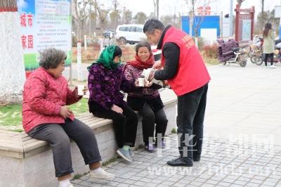 細(xì)心的志愿者們還為健身、散步、游玩的市民準(zhǔn)備了開水和杯子,為他們驅(qū)走寒意、溫暖雙手、滋潤(rùn)心田?!鞍澈涸诩乙矝]想著給我倒杯水喝啊,恁還大老遠(yuǎn)給我送來(lái)!”接過(guò)志愿者手中的開水,一位老人十分激動(dòng)。