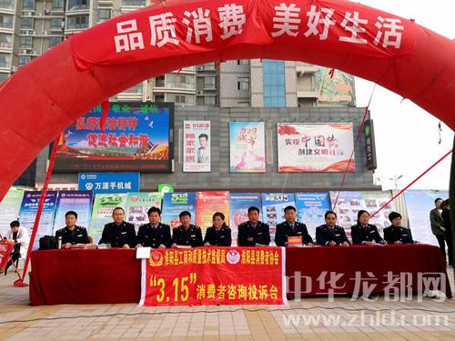 中華龍都網(wǎng)訊(周口報(bào)業(yè)全媒體記者 杜欣 文/圖)3月15日上午,淮陽(yáng)縣消費(fèi)者協(xié)會(huì)組織當(dāng)?shù)叵嚓P(guān)職能部門(mén),在潤(rùn)德廣場(chǎng)舉辦2018年3·15國(guó)際消費(fèi)者權(quán)益日紀(jì)念大會(huì)暨大型宣傳咨詢服務(wù)活動(dòng)?;搓?yáng)縣人大副主任、縣消費(fèi)者協(xié)會(huì)會(huì)長(zhǎng)霍偉,淮陽(yáng)縣人民政府副縣長(zhǎng)薛燕等參加活動(dòng)?;顒?dòng)現(xiàn)場(chǎng),職能部門(mén)專門(mén)設(shè)立了執(zhí)法“別動(dòng)隊(duì)”,在接受消費(fèi)者現(xiàn)場(chǎng)投訴后,隨時(shí)出動(dòng)處理。