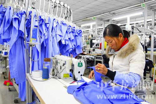 項(xiàng)城市產(chǎn)業(yè)集聚區(qū)莊吉服飾生產(chǎn)車間內(nèi),工人們正在趕制訂單服裝(如圖)。據(jù)了解,該企業(yè)由中國莊吉集團(tuán)上海服裝有限公司投資興建,總投資5億元,年上繳稅金1500萬元,吸納就業(yè)3000人,每月生產(chǎn)服裝85萬件,產(chǎn)品出口歐美、非洲等地區(qū)。該企業(yè)還通過開辦紡織服裝技能學(xué)校,對500余戶貧困家庭(殘疾人家庭等)進(jìn)行免費(fèi)培訓(xùn),切實(shí)解決了貧困家庭就業(yè)問題。王潔石 攝