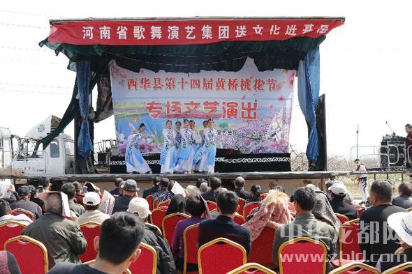 中華龍都網(wǎng)訊(周口報(bào)業(yè)全媒體記者 張猛)桃花朵朵競相開,歌聲陣陣花中來。3月26日上午,河南省歌舞演藝集團(tuán)送文化進(jìn)基層活動走進(jìn)西華縣第十四屆桃花節(jié)。伴隨著悠揚(yáng)的歌聲,本屆桃花節(jié)徐徐拉開帷幕。
