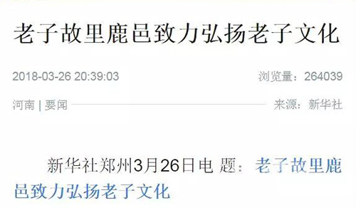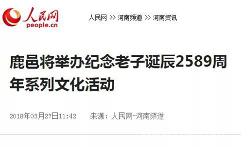 中華龍都網(wǎng)訊(周口報(bào)業(yè)全媒體記者 李瑞才 文/圖)再過幾天(本周六),就是老子誕辰2589周年了。為進(jìn)一步推動(dòng)老子文化與縣域建設(shè)深度融合,把老子文化這張牌打響擦亮,2016年年初鹿邑縣恢復(fù)舉辦了“老子生日拜典暨河南省非物質(zhì)文化遺產(chǎn)展演系列活動(dòng)”這一文化盛事,使得老子故里的文化感染力和影響力不斷增強(qiáng)。今年3月31日至4月30日(農(nóng)歷二月十五日至三月十五日),鹿邑將繼續(xù)在縣城和太清宮景區(qū)舉辦2018年老子文化系列活動(dòng)。連日來,新華社、人民網(wǎng)、光明網(wǎng)等中央主流媒體再次聚焦鹿邑,紛紛為老子故里這一文化旅游產(chǎn)業(yè)發(fā)展盛事宣傳造勢……