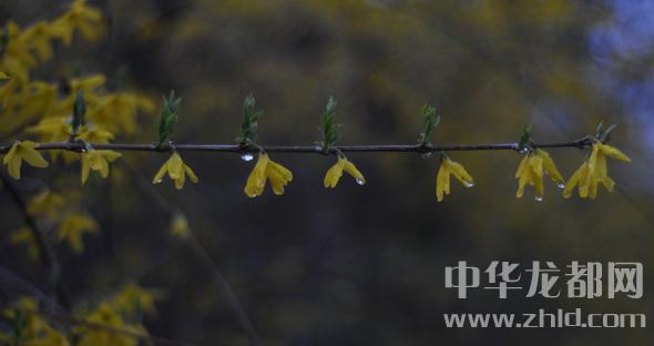 中華龍都網(wǎng)訊(周口報(bào)業(yè)全媒體記者 朱海龍 文/圖 )迎春花和連翹有些相似,花兒小巧,成串地分布在花枝上,花兒金黃,雨水的潤(rùn)澤使她顯得分外嬌艷,大有臨風(fēng)而綻的仙姿靈骨。