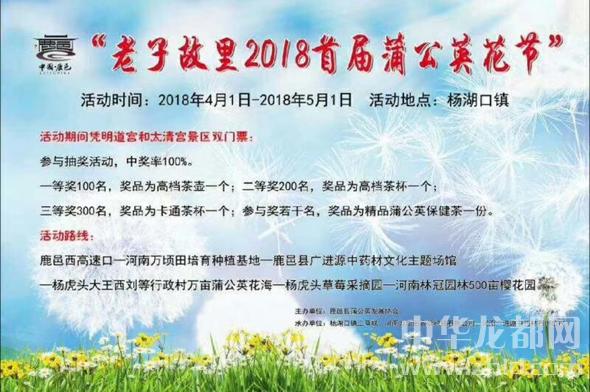 老子故里2018首屆蒲公英花節(jié)將于4月1日正式拉開序幕。此次活動將持續(xù)到5月1日,賞花期長達(dá)一個月。(周口報業(yè)全媒體記者 李瑞才 通訊員 郭紅民 攝)