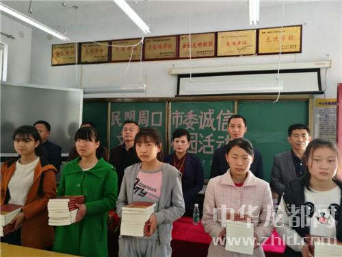 活動當日,民盟周口市委一行數(shù)人分別到商水縣新城小學和張莊一中等學校舉辦誠信講座,并捐贈數(shù)百本盟員戚富崗編著的誠信圖書。在每一所學校,民盟市委都為同學們送上一場精彩的講座。他們用鮮明的事例讓同學們深刻體會到只有內(nèi)心裝滿誠信,品格才會高尚、筆下的文字才會打動人、才會實現(xiàn)理想抱負有所作為!