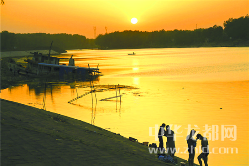 落日余暉下的沙潁河一片靜謐,掩映在夕陽下的周口大閘,更是美輪美奐,讓人流連忘返。